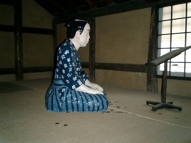 中津城のそばには福沢諭吉旧居記念館もあって、明治時代の中津についての展示も見られる。福沢諭吉が勉学に励んだという土蔵の2階には、ご覧のようなフィギュアが安置されている。