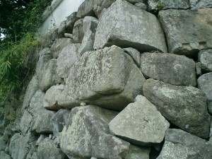 本丸の石垣は野面積みっぽかった。この写真は、後世組み直されたエッジ部分だと思われる。石垣は角をしっかり組まないと崩れやすいのだが……。